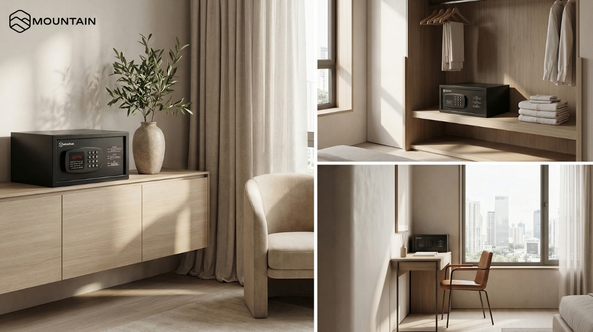 - Why it works: ช่วยให้ห้องขนาดเล็กดูโปร่ง ไม่เทอะทะ แต่ยังคงมอบมาตรฐานความปลอดภัยระดับสากลในรูปแบบ ตู้เซฟโรงแรม ที่แขกอุ่นใจได้ครบถ้วน